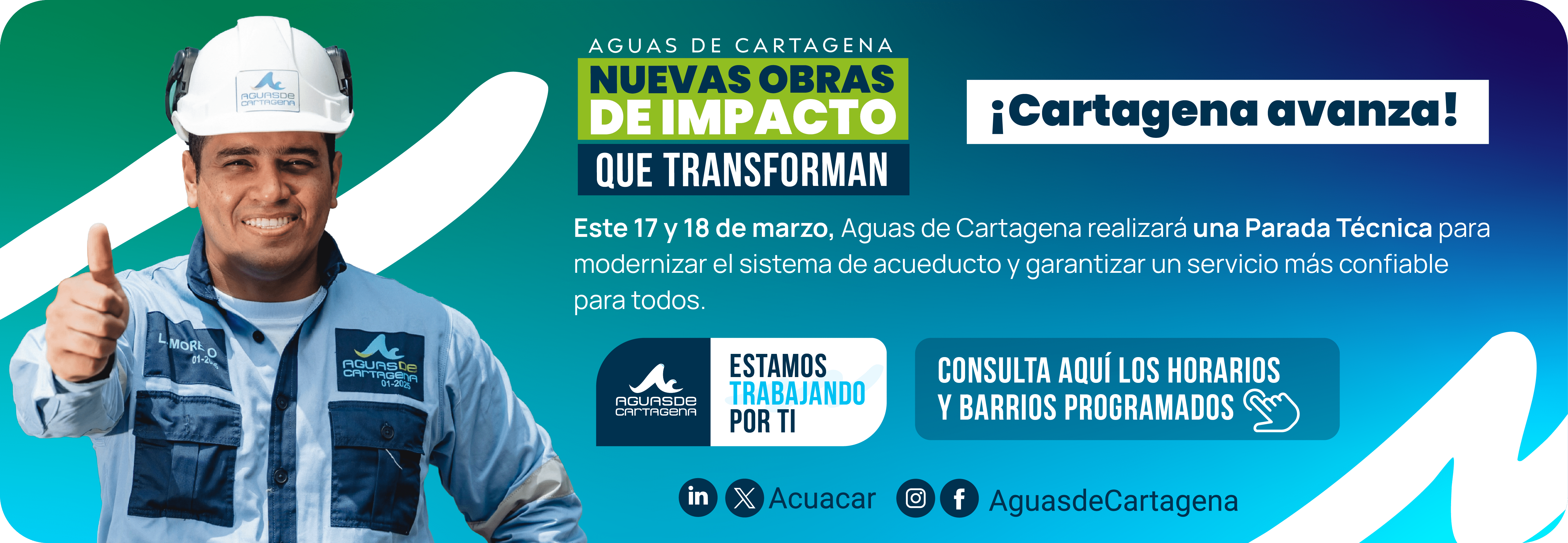 En esta sección de noticias corporativas, encontrarás los boletines más recientes con información oportuna, clara y transparente sobre la operación de Aguas de Cartagena, incluyendo actualizaciones, proyectos y campañas clave para nuestra ciudad.