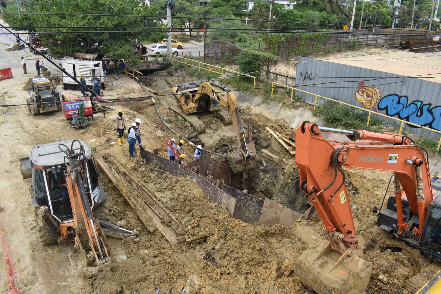 Aguas de Cartagena ha alcanzado un 70% de avance en los trabajos de reparación de la tubería CCP de 36 pulgadas, ubicada a más de 6 metros de profundidad en la transversal 54. Debido a la complejidad de la intervención, se han implementado medidas especiales de seguridad. Un equipo de 40 colaboradores trabaja en turnos rotativos para atender esta situación de manera continua, enfrentando y superando desafíos imprevistos.